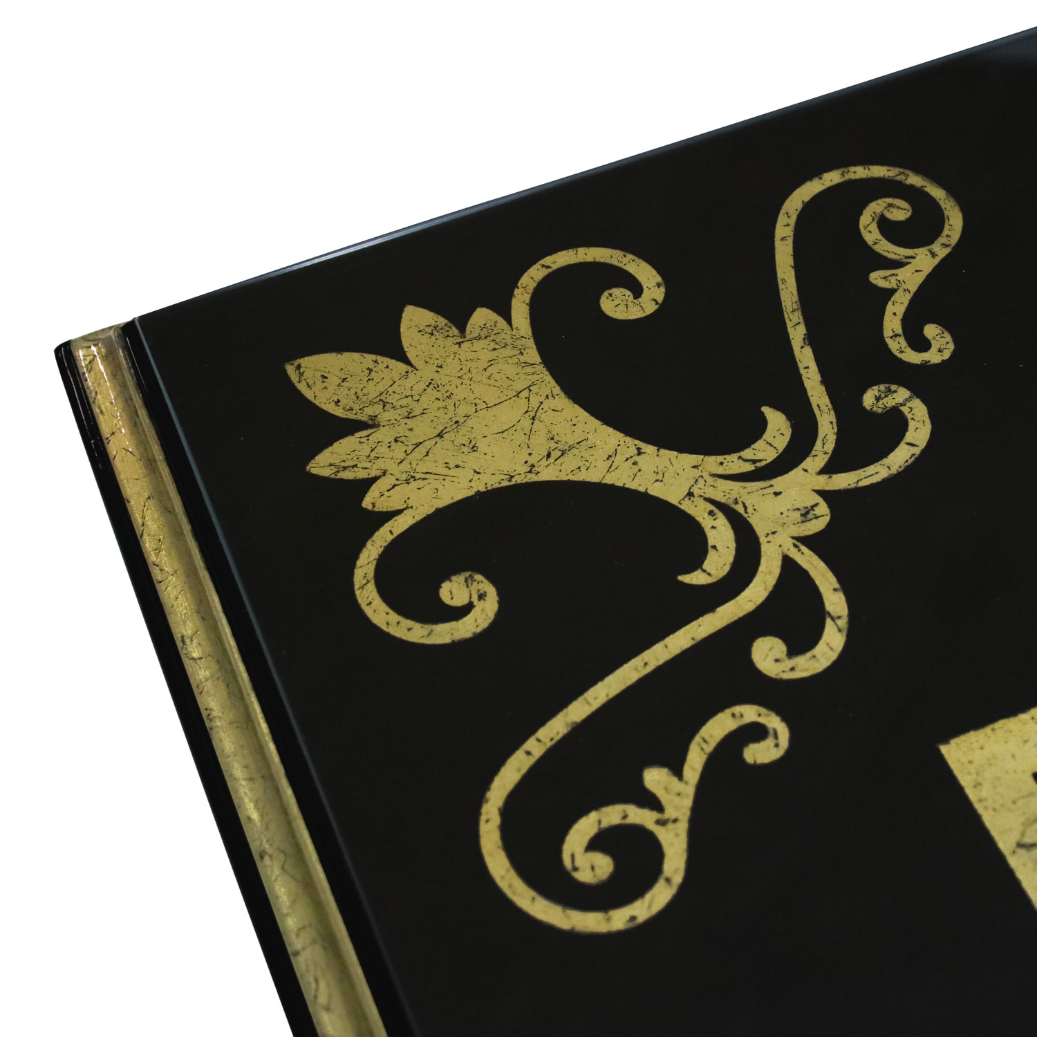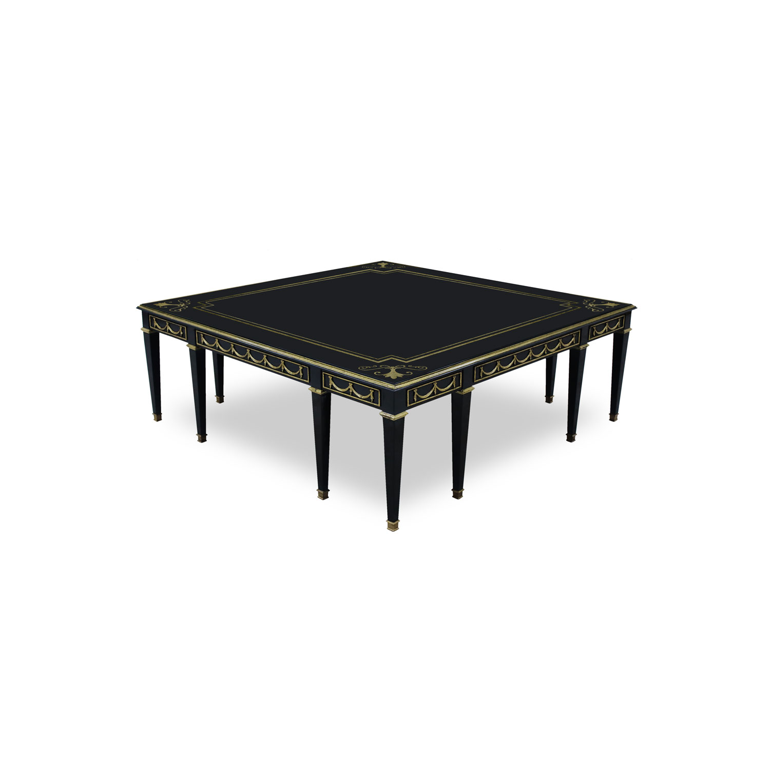 A stunning centerpiece featuring a hand-painted mahogany wood top in glossy black finish, adorned with a gilded accent frame for a touch of elegance. Complement the look with the Side Table Brixen.
