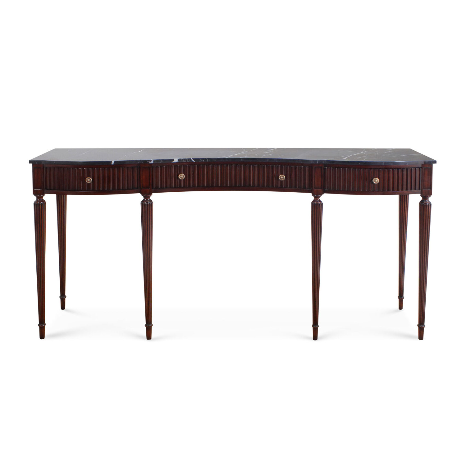 This console table features a luxurious marble top that exudes sophistication and durability, making it an ideal choice for both practical and decorative purposes.