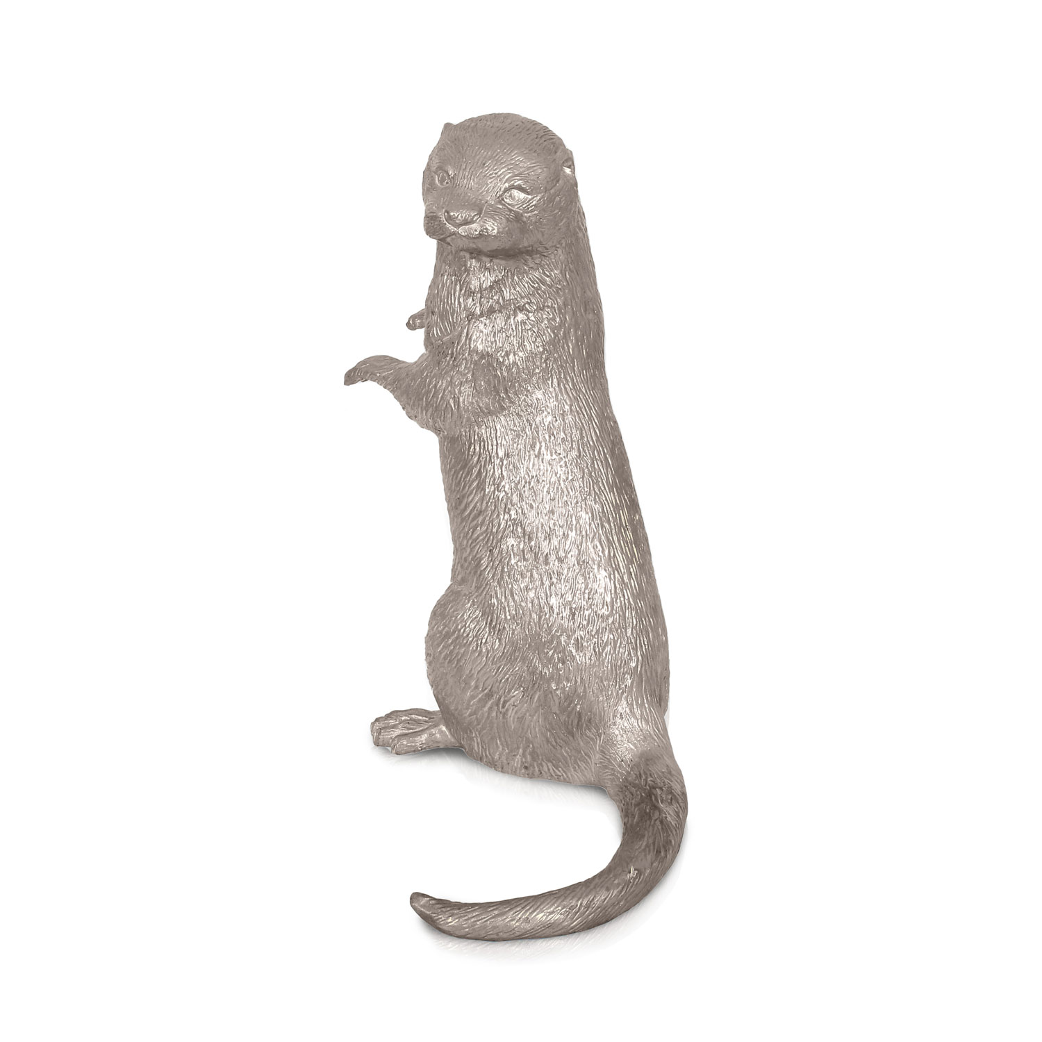 Standing as a testament to the enduring allure of bronze sculptures, the Otter statue in silver finish not only serves as a decorative piece but also as a symbol of craftsmanship and appreciation for the natural world. Also available in antique finish.