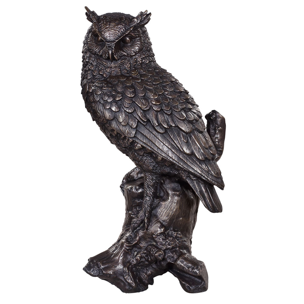 Let the ancient charm of this bronze-casted owl statue enchant your surroundings, a symbol of wisdom that captures the essence of mystique.